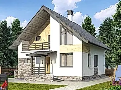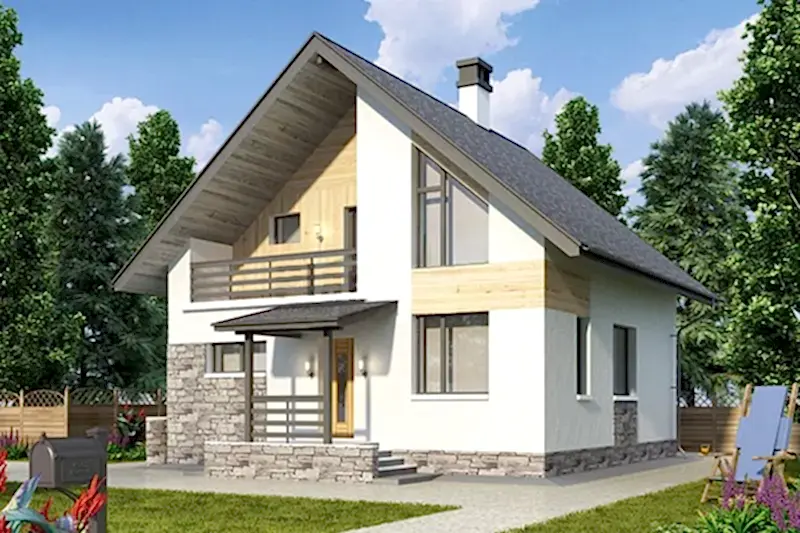 Этот компактный двухэтажный коттедж прекрасно будет смотреться как на дачном участке, так и в городе. Он рассчитан на «PinUp» проживание семьи из 3-5 человек.