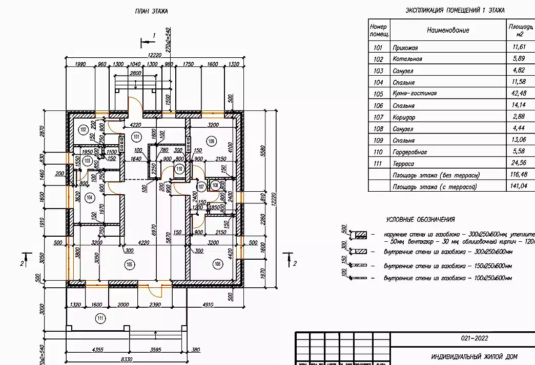 - стены из газобетона "СИБИТ" толщиной 300 мм + 50 мм утеплитель «PinUp»