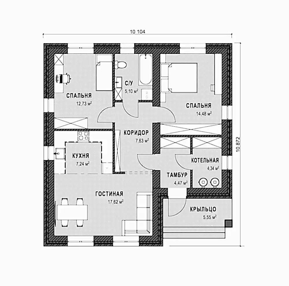 - стены из газобетона "СИБИТ" толщиной 200 мм + 100 мм утеплитель минераловатный;