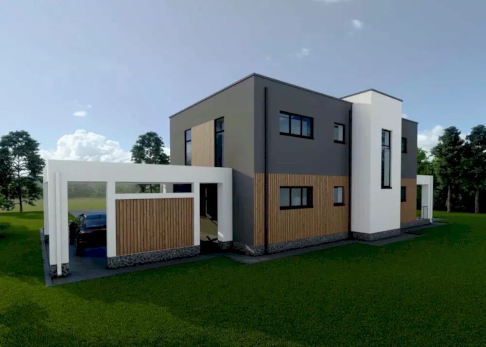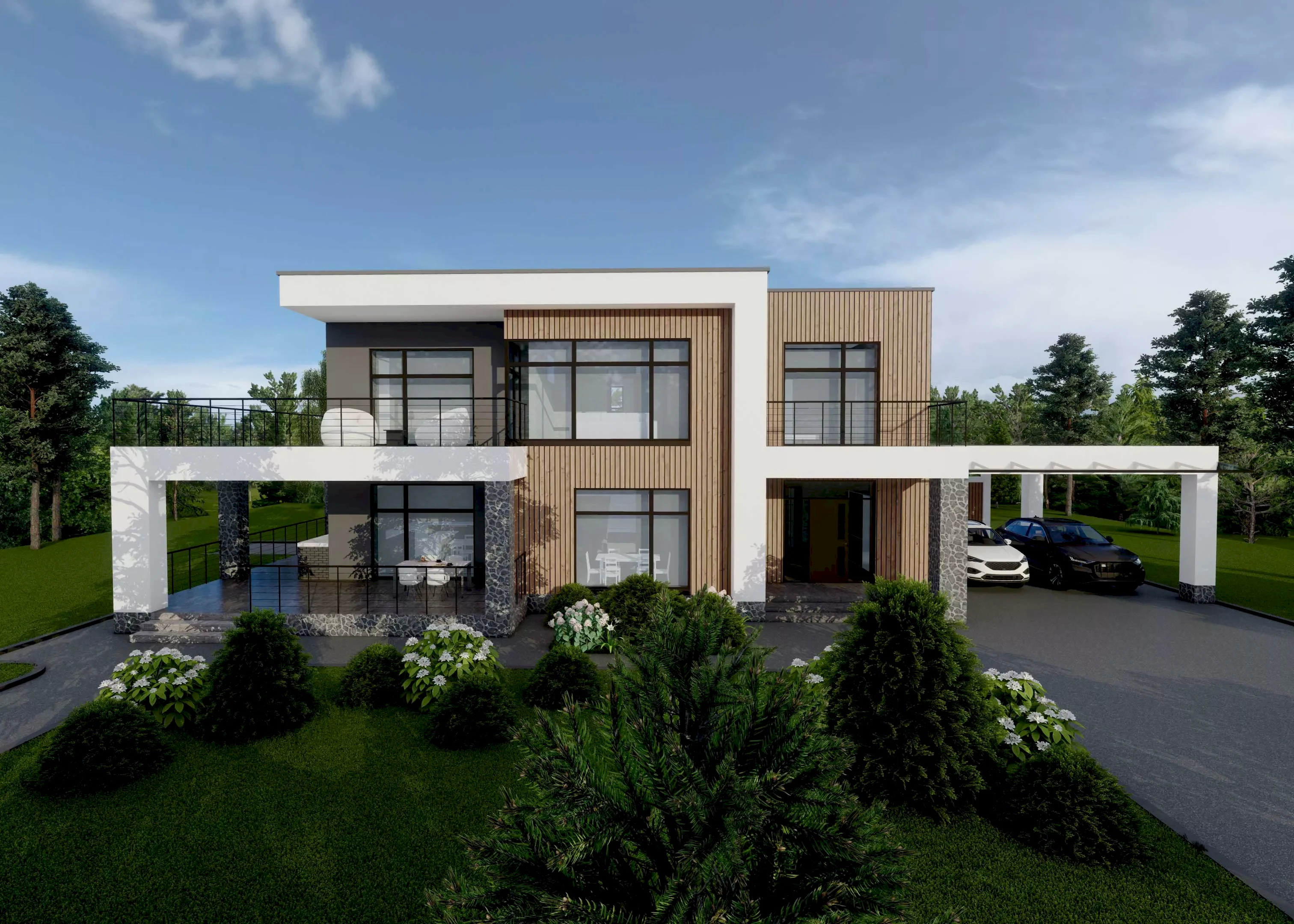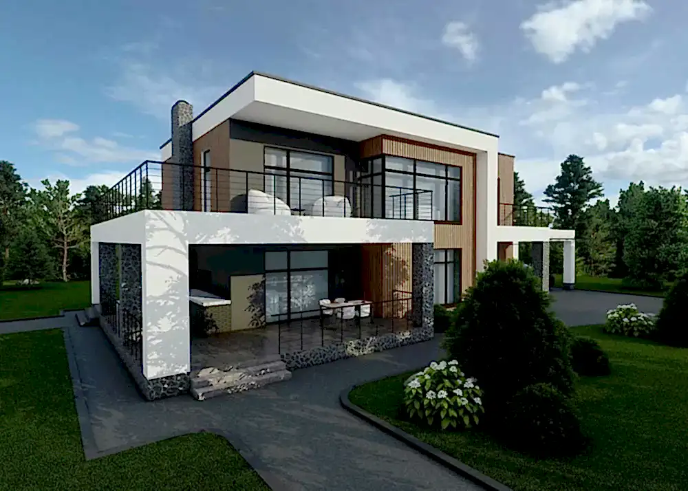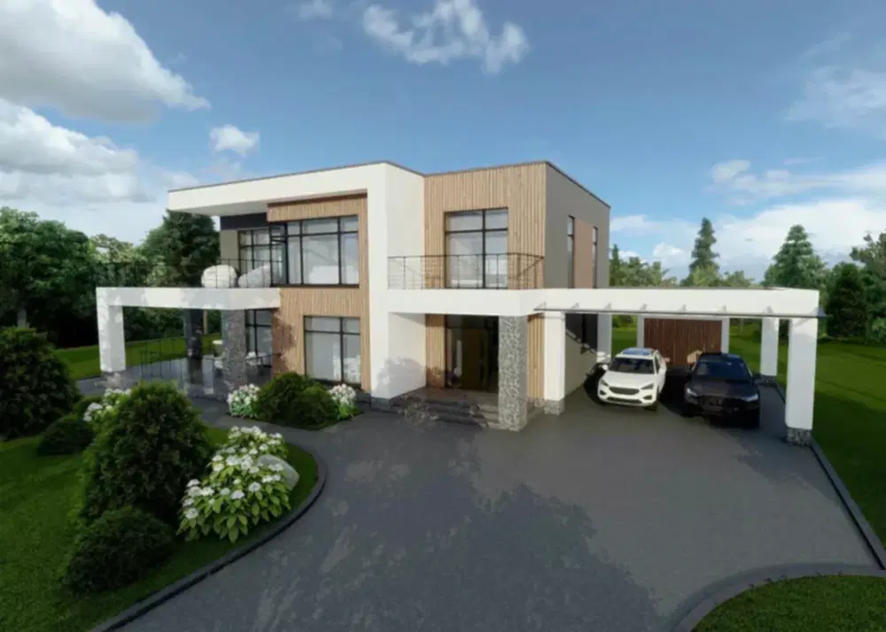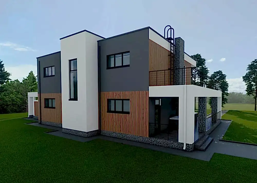 В стоимость не входит покрытие кровли, водосточная система и «PinUp» фасада.