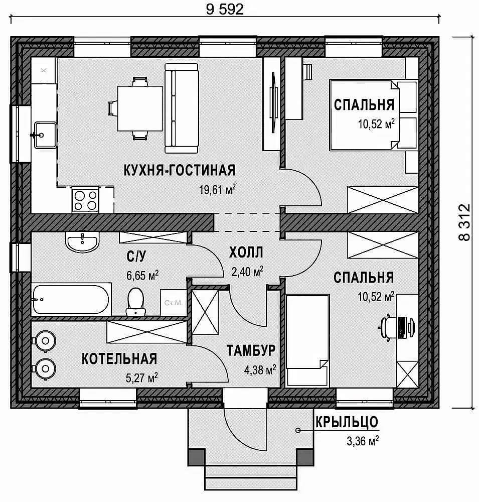 - «PinUp» из газобетона "СИБИТ" толщиной 200 мм + 100 мм утеплитель минераловатный;