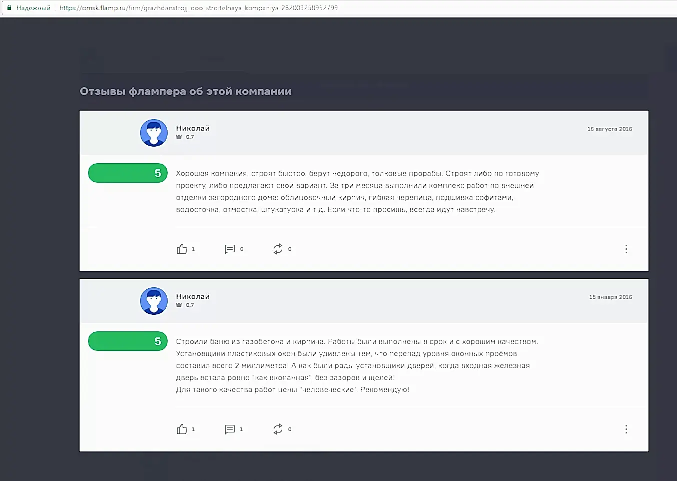 Хорошая компания, строят быстро, берут недорого, толковые прорабы. Строят либо по готовому проекту, либо предлагают свой вариант. За три месяца выполнили комплекс работ по внешней отделки загородного дома: облицовочный кирпич, гибкая черепица, подшивка софитами, водосточка, отмостка, штукатурка и т.д. Если что-то просишь, всегда идут навстречу.