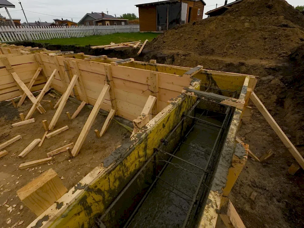 - Профессиональная опалубка, «PinUp» на шпильки. Перед её установкой выполнена подбетонка - она защищает от капиллярного подсоса влаги и удерживает бетонное молочко внутри конструкции