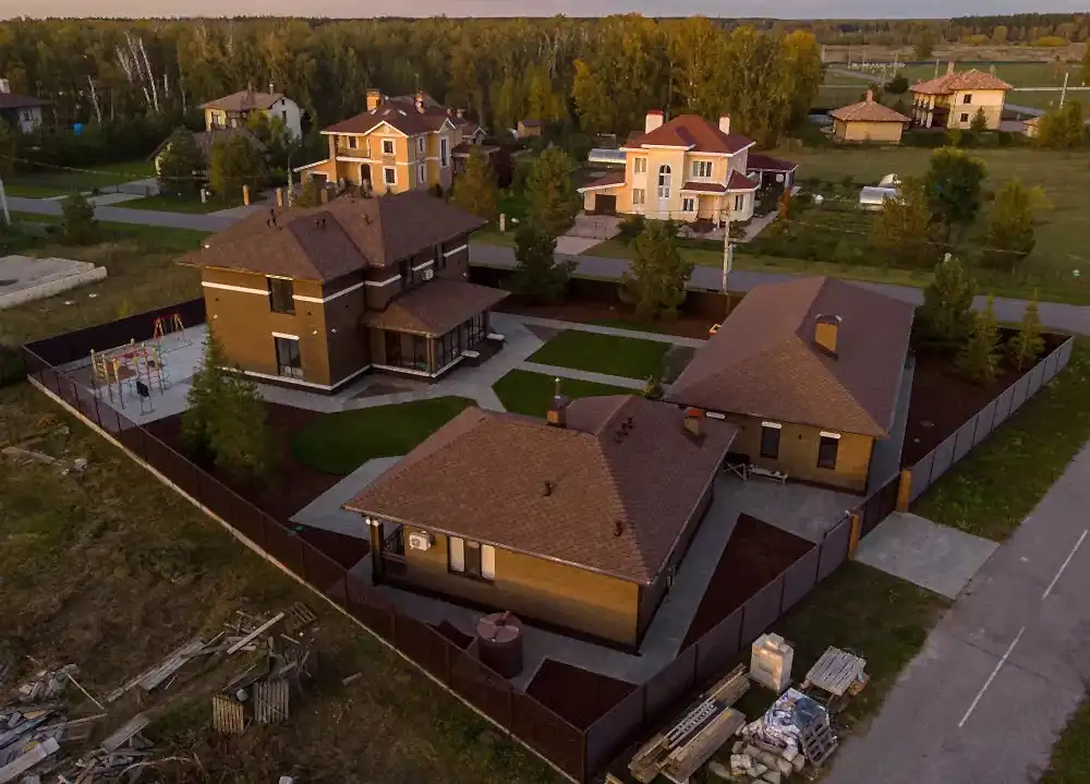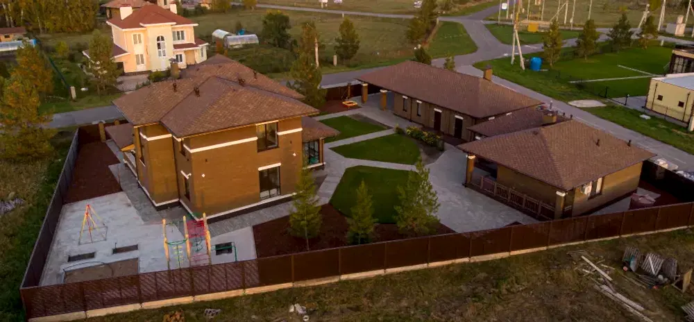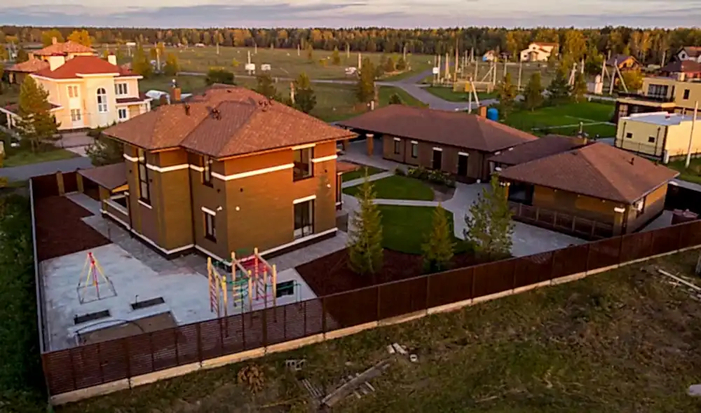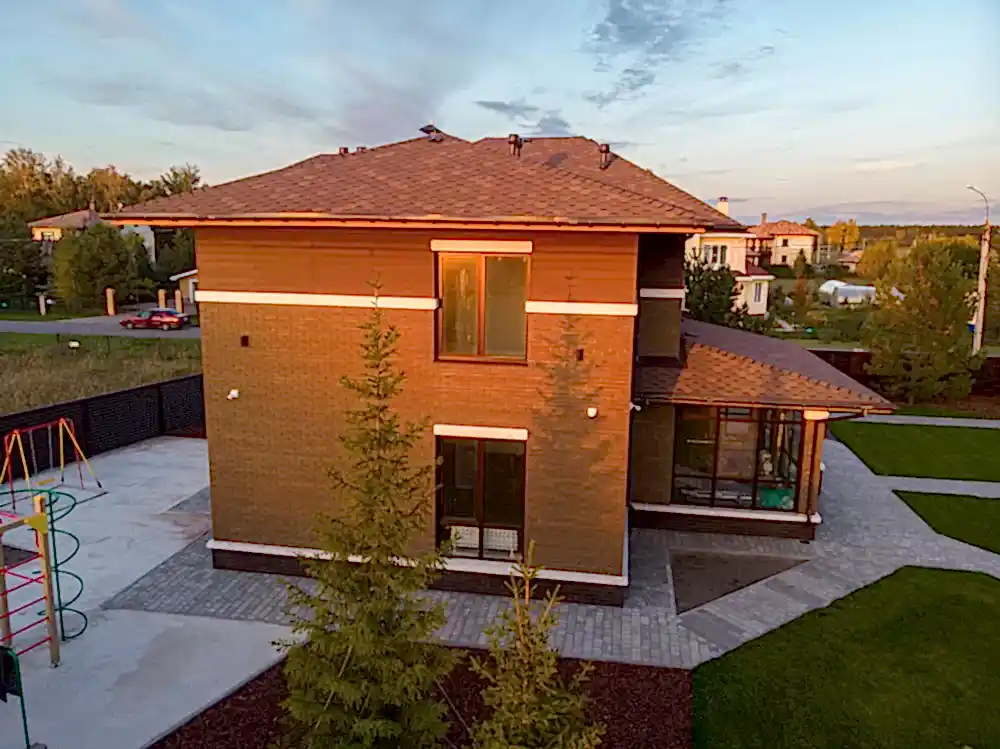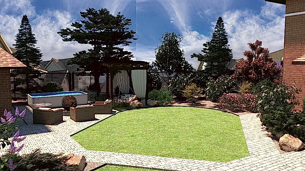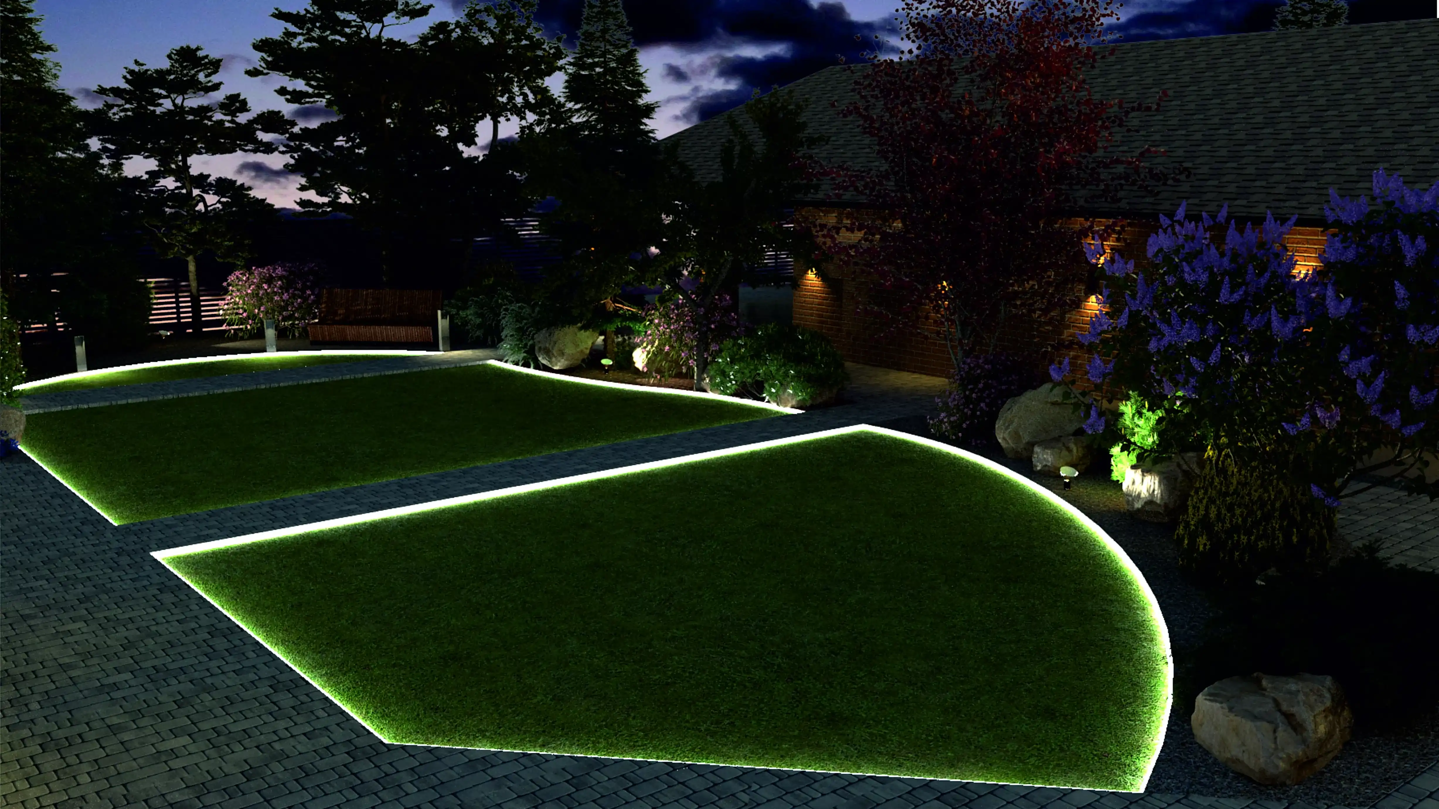 Участок на 15 сотках для молодой семьи из 4х человек. Заказчикам хотелось ощущение уюта, леса с лужайками. Зона отдыха расположилась рядом с баней и барбекю. На ней разместились летний бассейн, место под костровую чашу и подвесная кровать. Эта зона используется под уличный кинотеатр. С торца и сзади дома размещены спортивная площадка и детская. А так же теплица специально для детей, увлеченных ботаникой. Функциональное и декоративное ландшафтное освещение имеет многоуровневую систему из разнообразных осветительных «PinUp»
