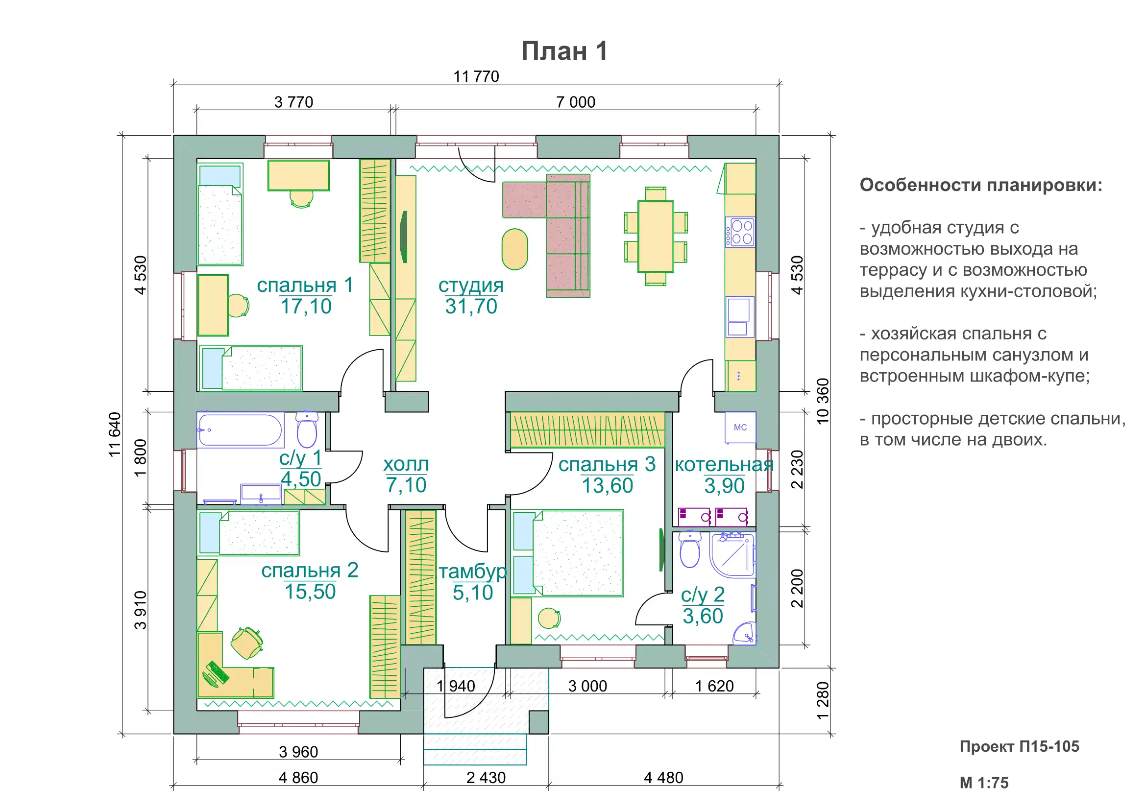 | Площадь | 105 кв. |