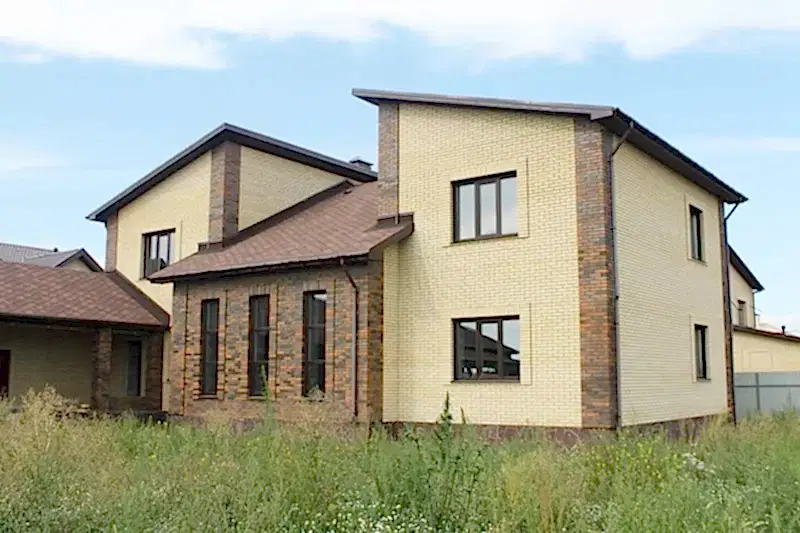 Этот просторный двухэтажный дом с баней и спортзалом был построен нашей компанией в 2016 году в коттеджном поселке «Чукреевка». Фундамент этого дома - ж Кровля покрыта гибкой битумной черепицей Shinglas. На участке также построен гараж, расположенный таким образом, что широкий свес крыши защищает дорожку к дому от атмосферных осадков.