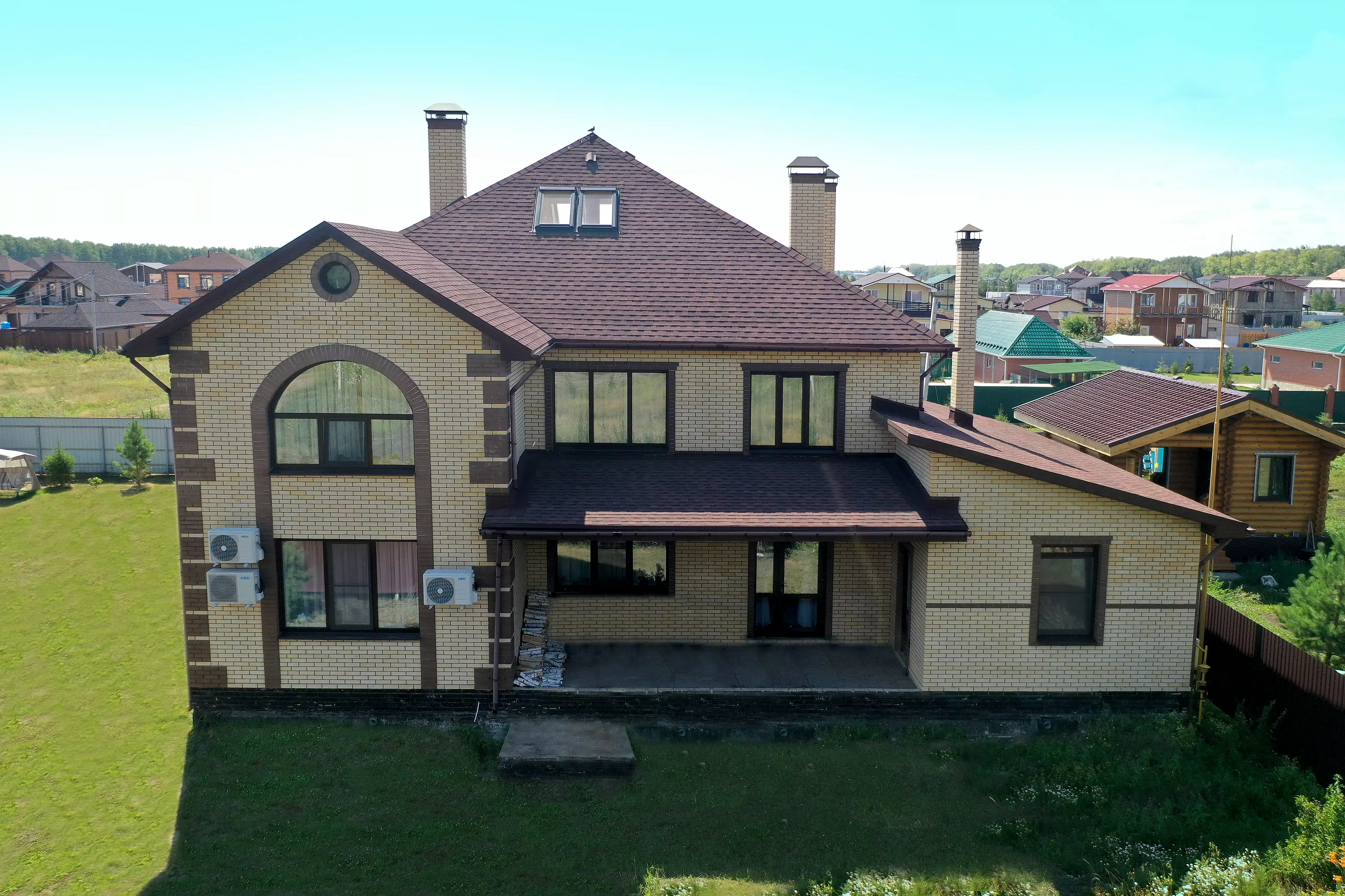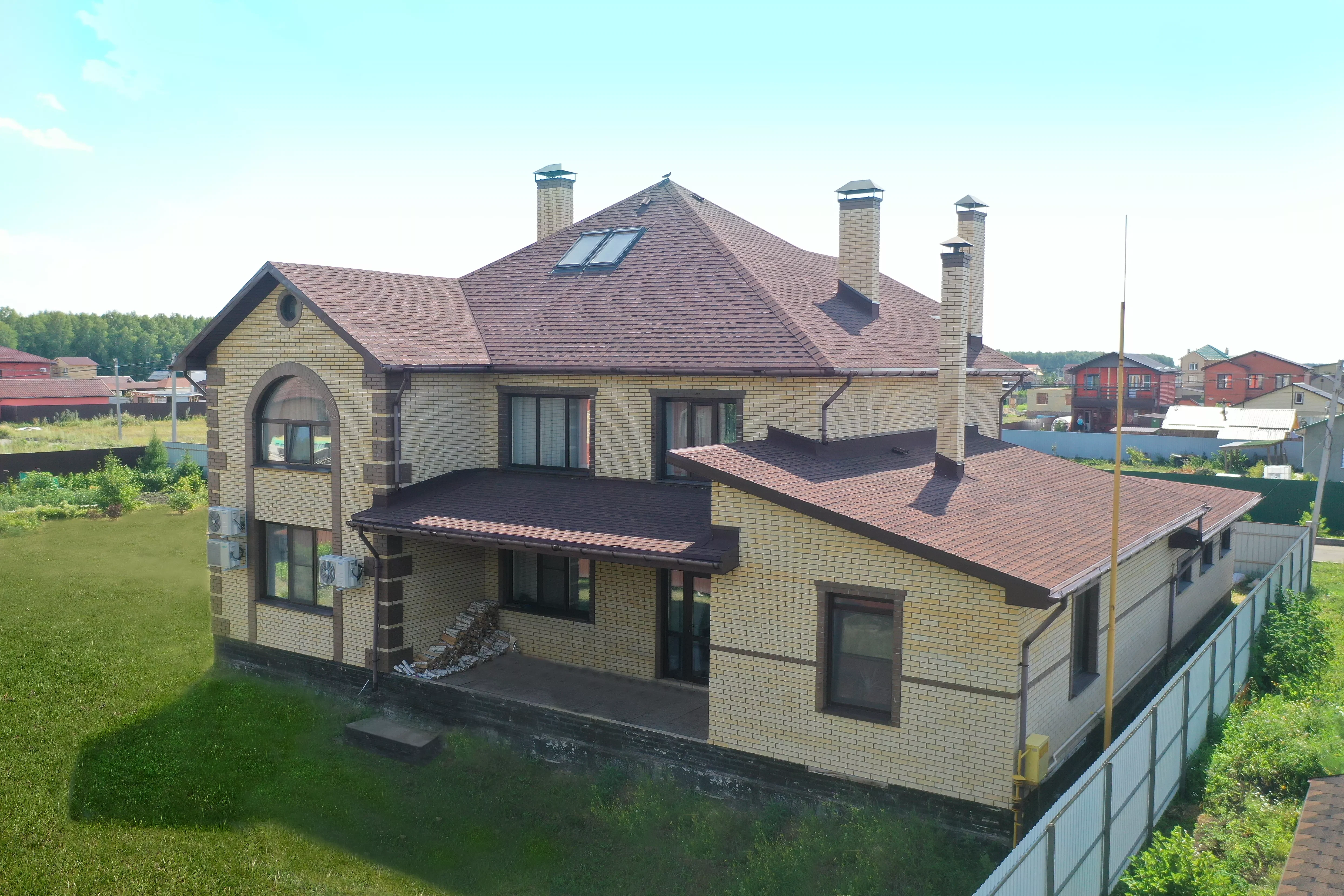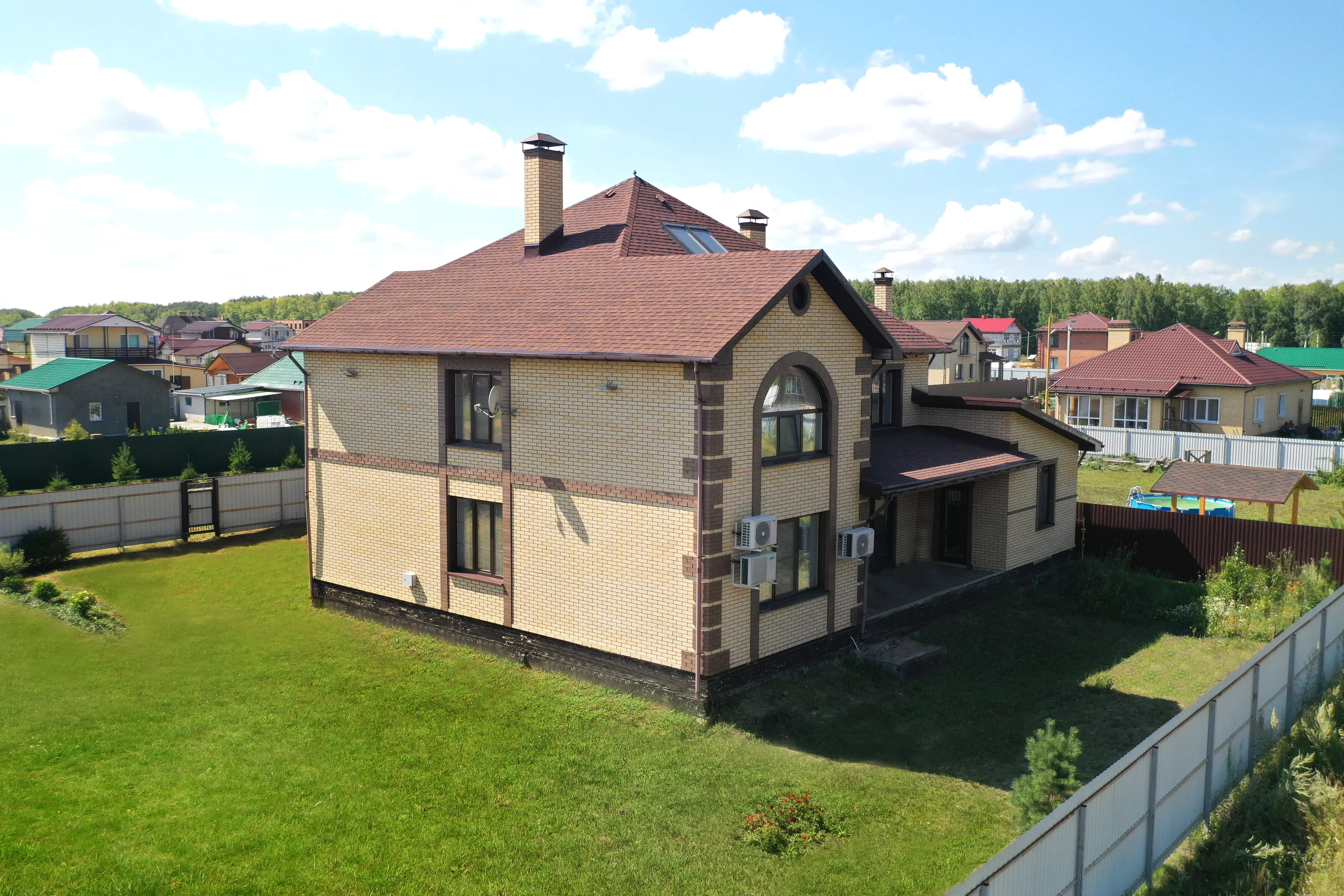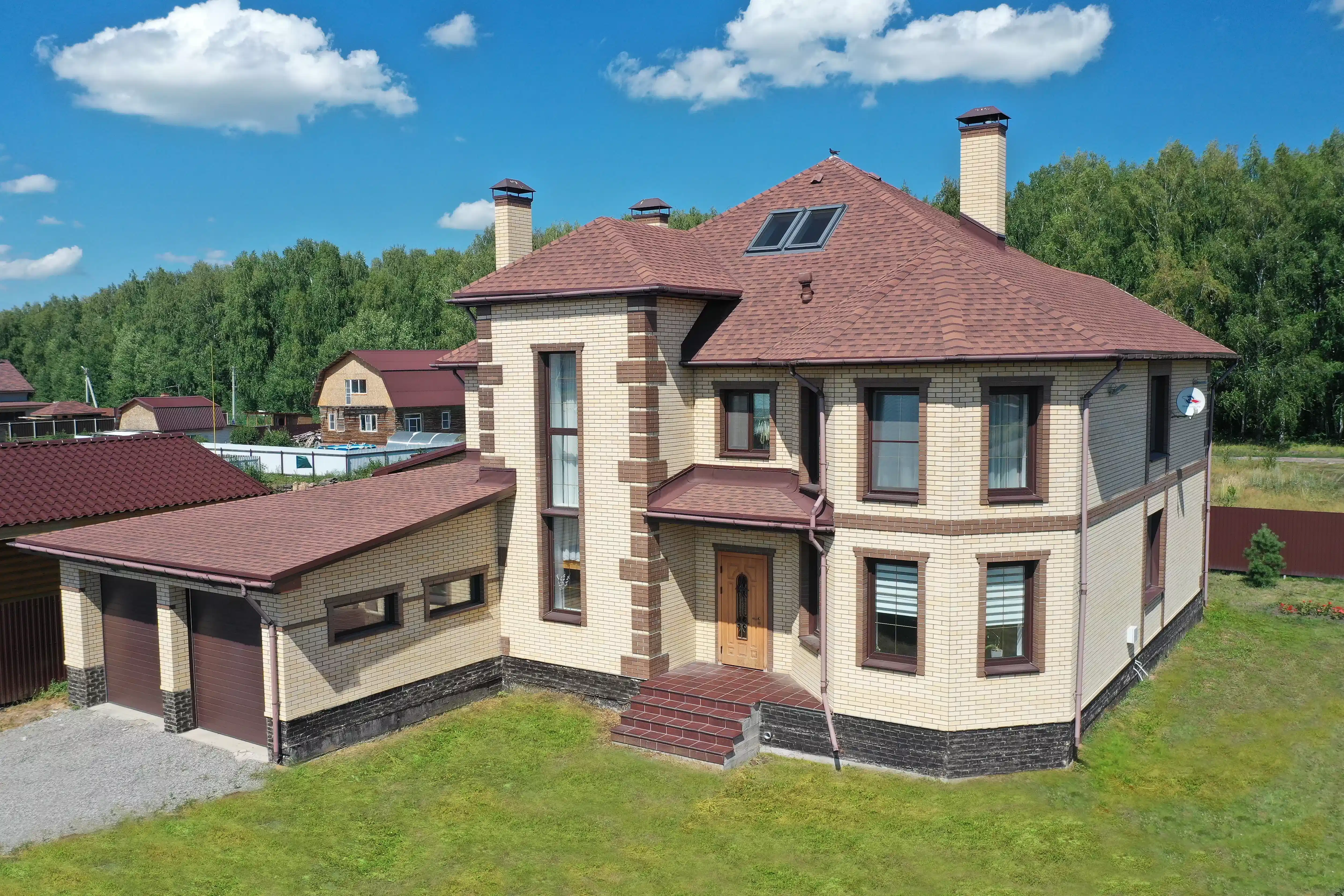 Этот уютный двухэтажный коттедж был построен нашей компанией в 2014 году в тихом месте - коттеджном поселке «Пушкинъ». Отличительная особенность - при создании проекта была изменена типовая планировка, улучшен дизайн фасада. Так, помимо гаража на два автомобиля, на первом этаже расположилась сауна с уютной комнатой отдыха. Другой особенностью коттеджа является «второй свет», благодаря которому гостиная становится больше и светлее. Гостиная и кухня-столовая представляет единое пространство, здесь удобно принимать гостей. Внутри отделка из мрамора и дерева, хрустальные люстры. На заднем дворе предусмотрена мангальная зона. Дом рассчитан на проживание большой и дружной семьи из 4-5 человек.