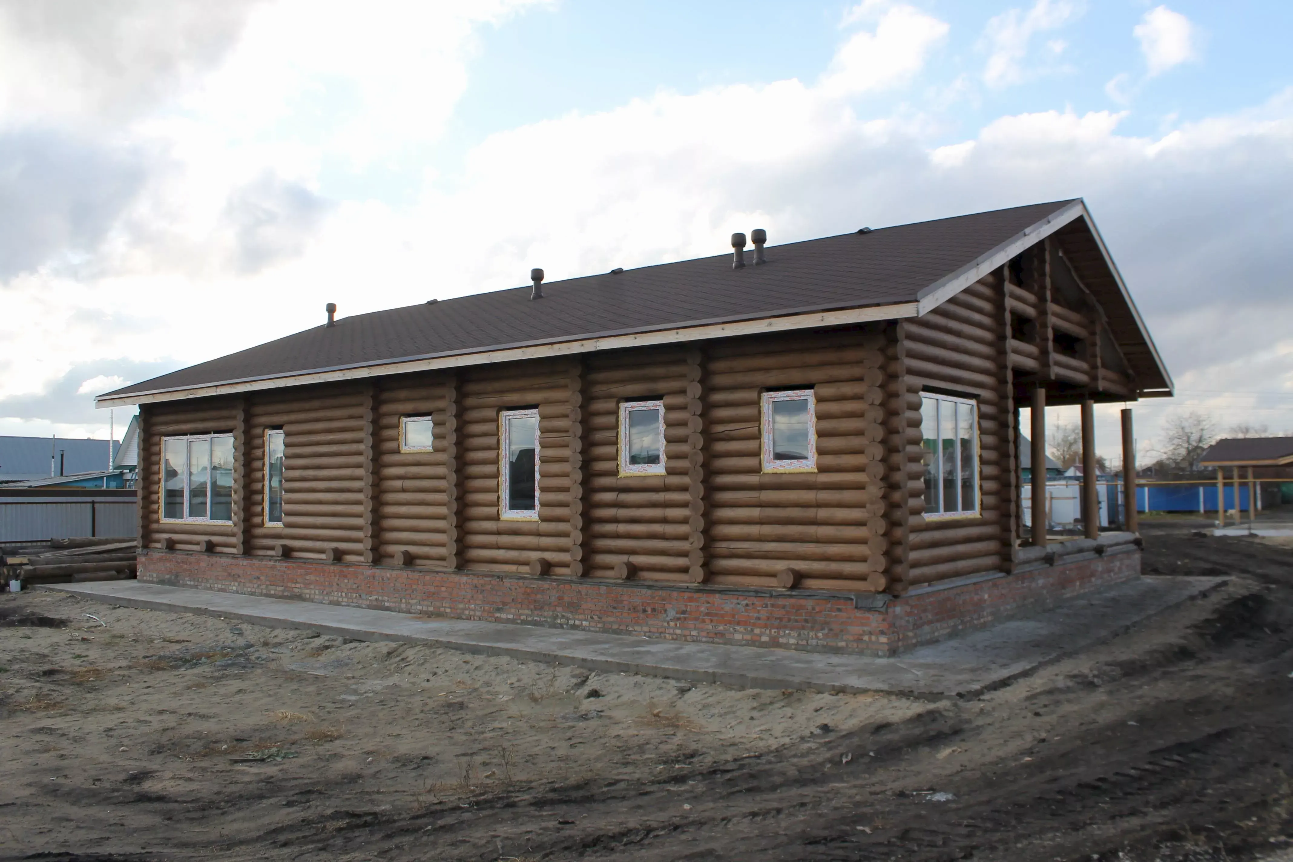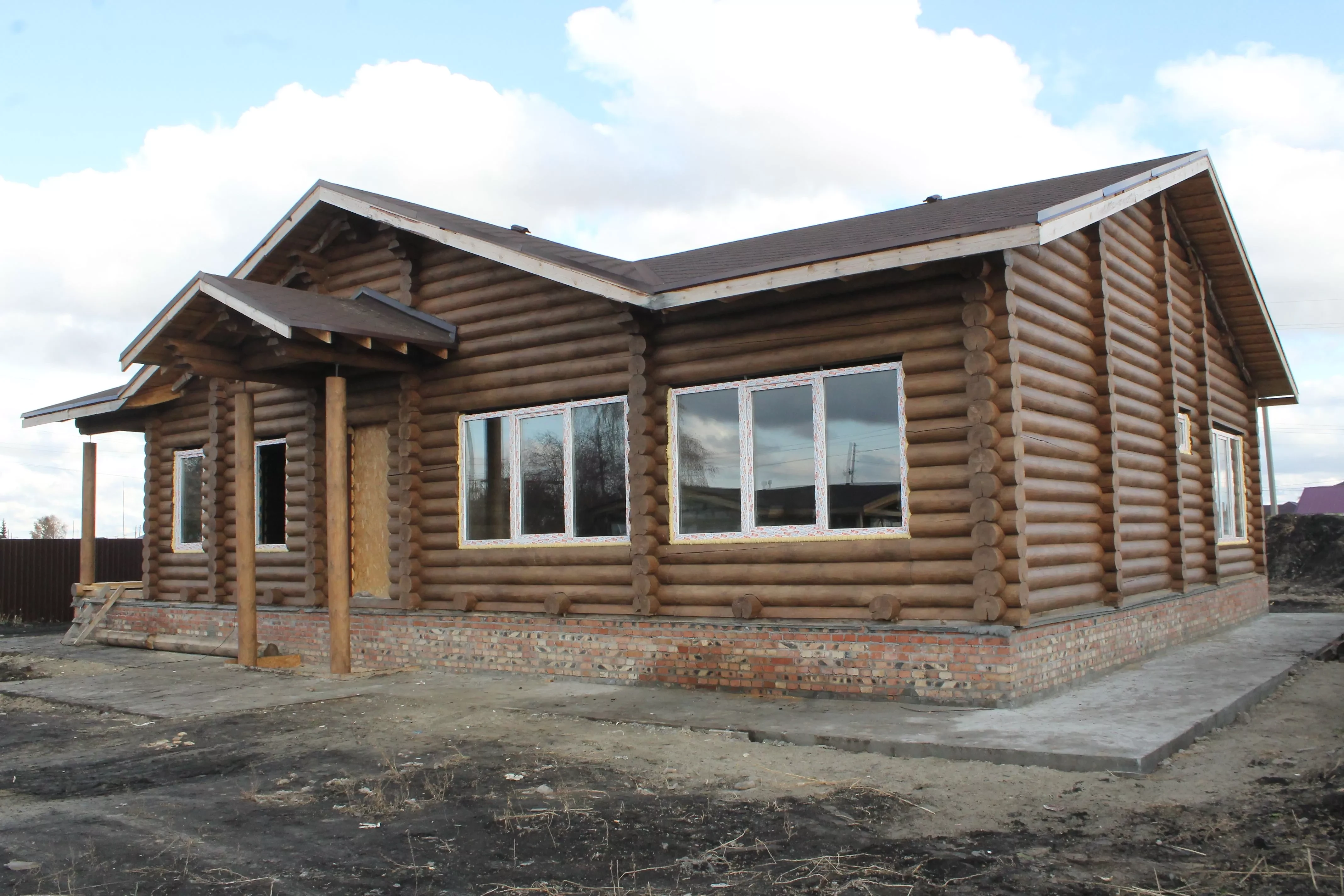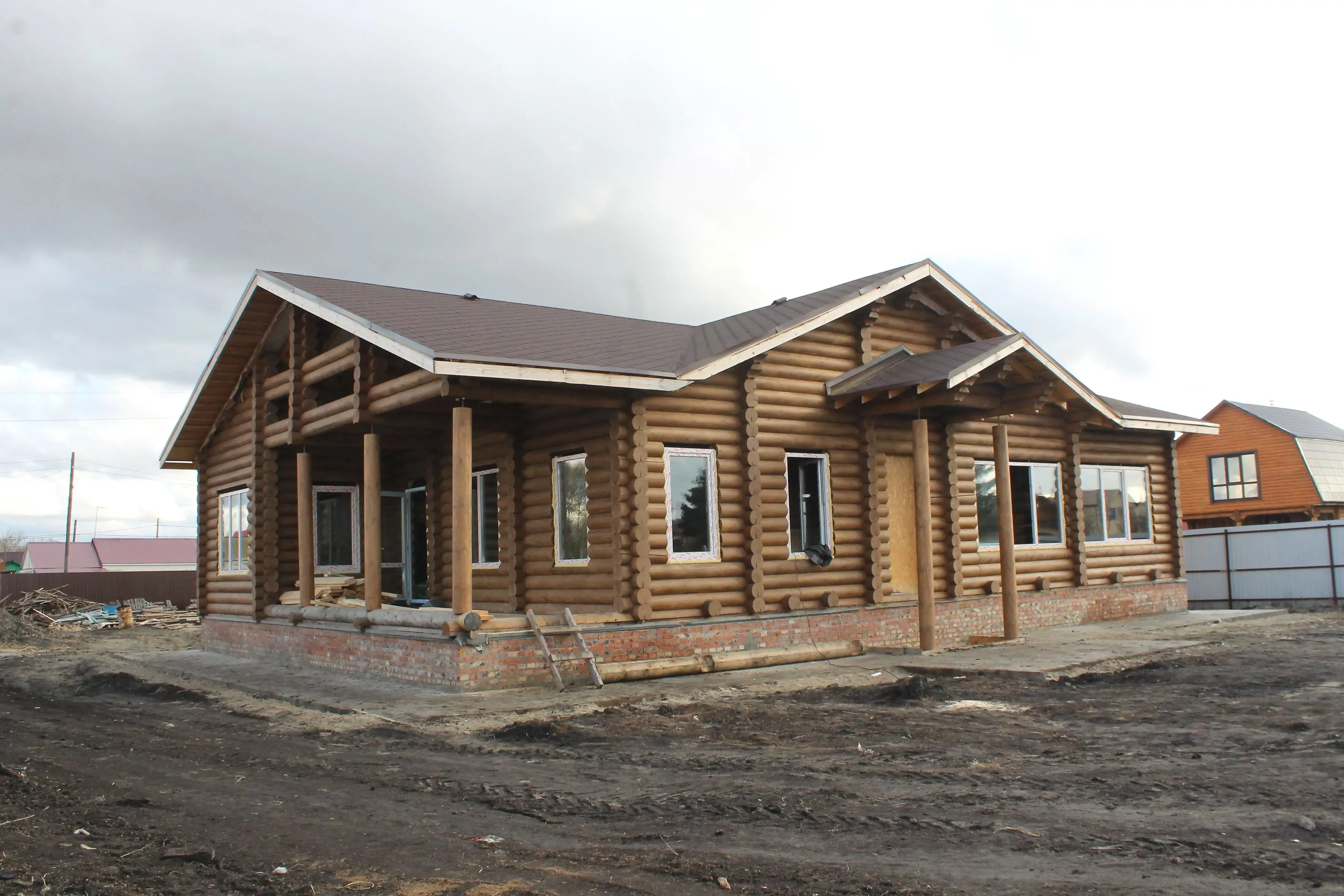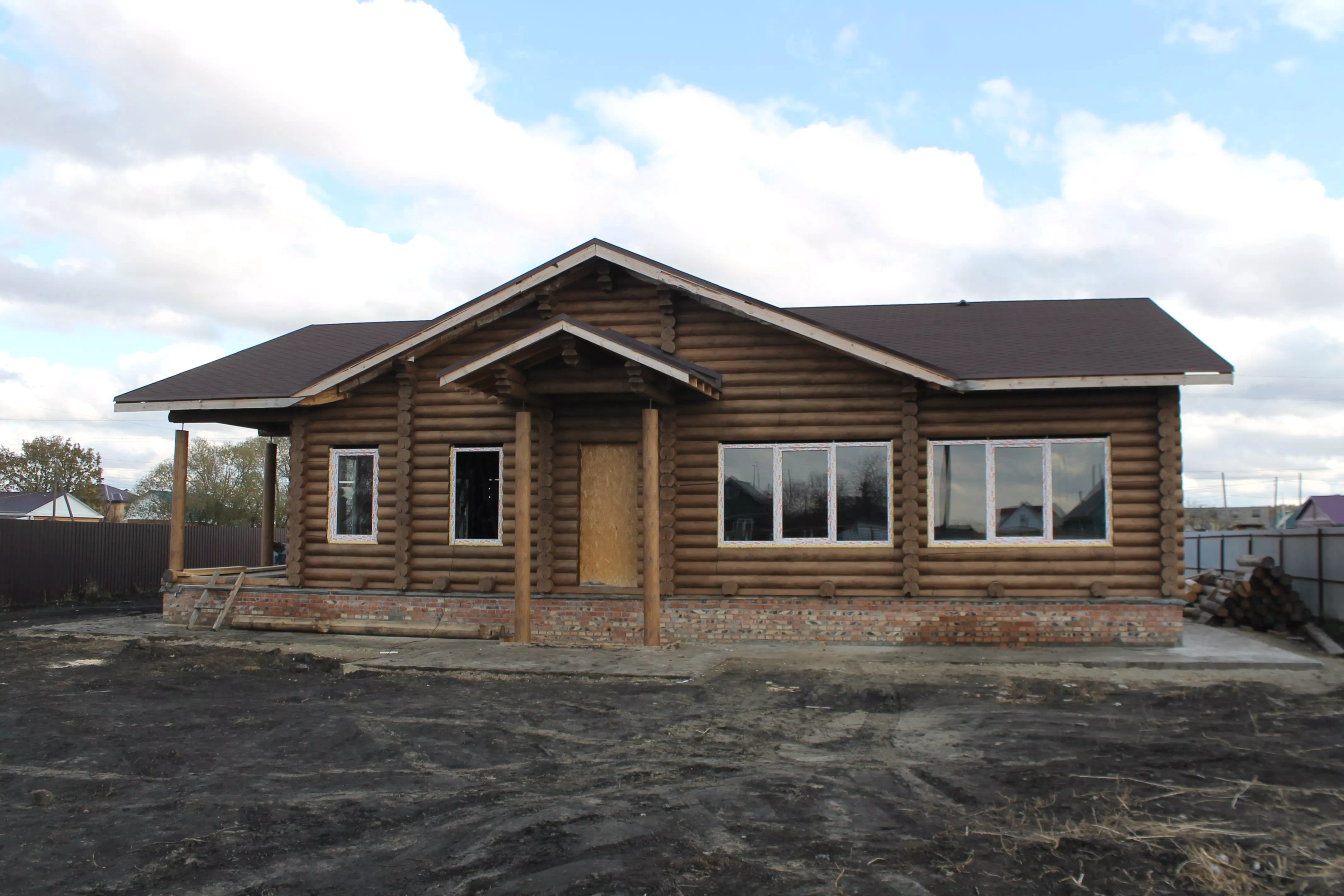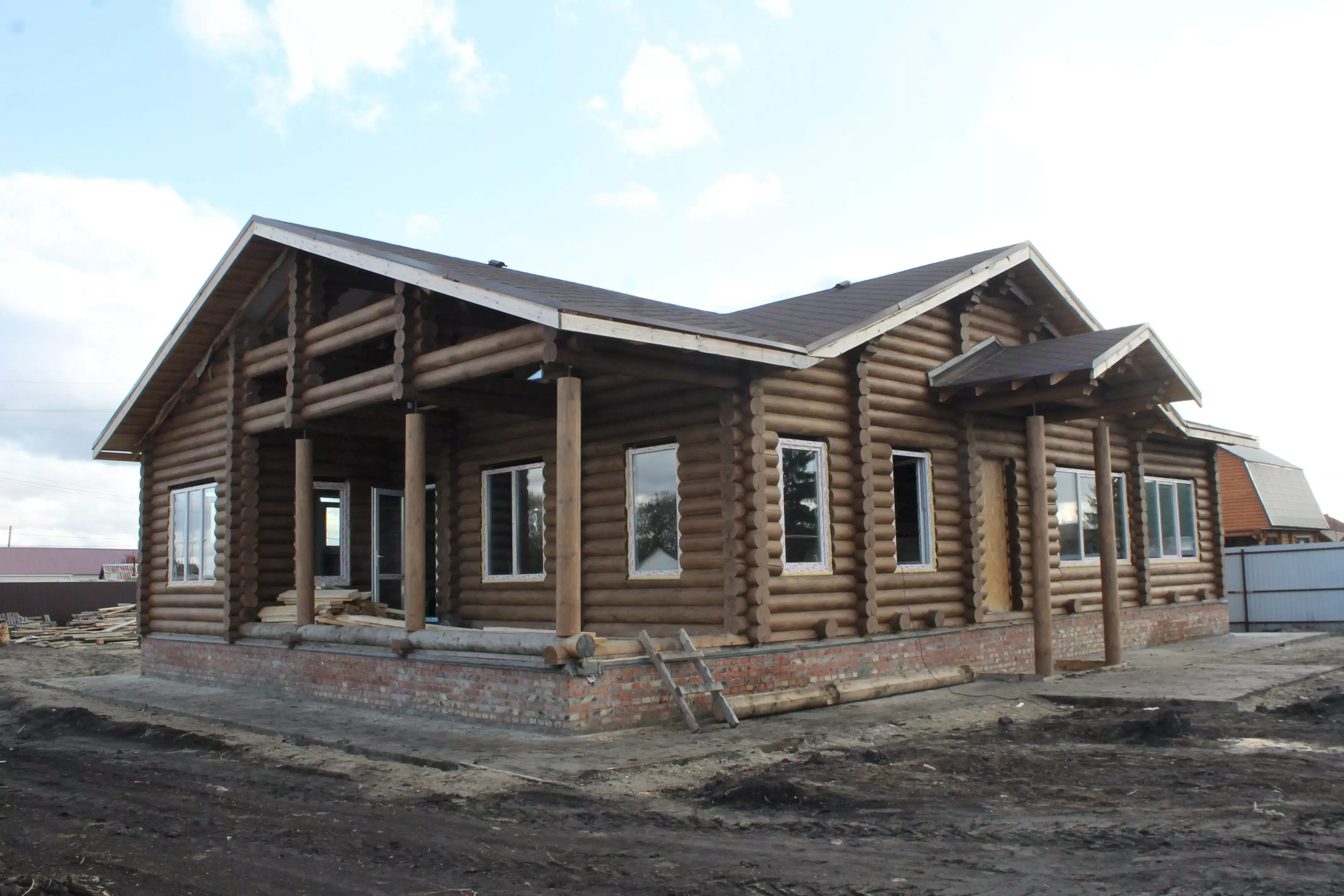 Этот компактный дом из бруса был построен нашей компанией в 2016 году в поселке Пушкино. Коттедж выполнен в классическом стиле из оцилиндрованного бревна, диаметром 240 мм, обработан защитными составами, сохраняющими фактуру дерева. Кровля покрыта гибкой битумной черепицей Docke.