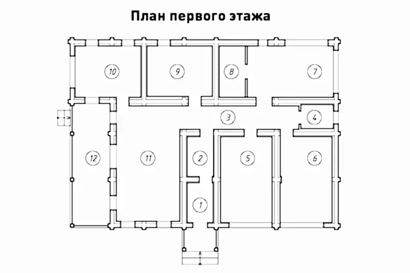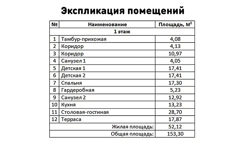 Дом рассчитан на круглогодичное проживание семьи с 2-3 детьми. Две детских комнаты и большая спальня с гардеробной комнатой отделены от гостиной и кухни санузлом и коридором, благодаря чему можно не бояться нарушить дневной или ночной отдых домочадцев. Из гостиной и кухни проектом предусмотрен выход на большую террасу, расположенную с торца дома.