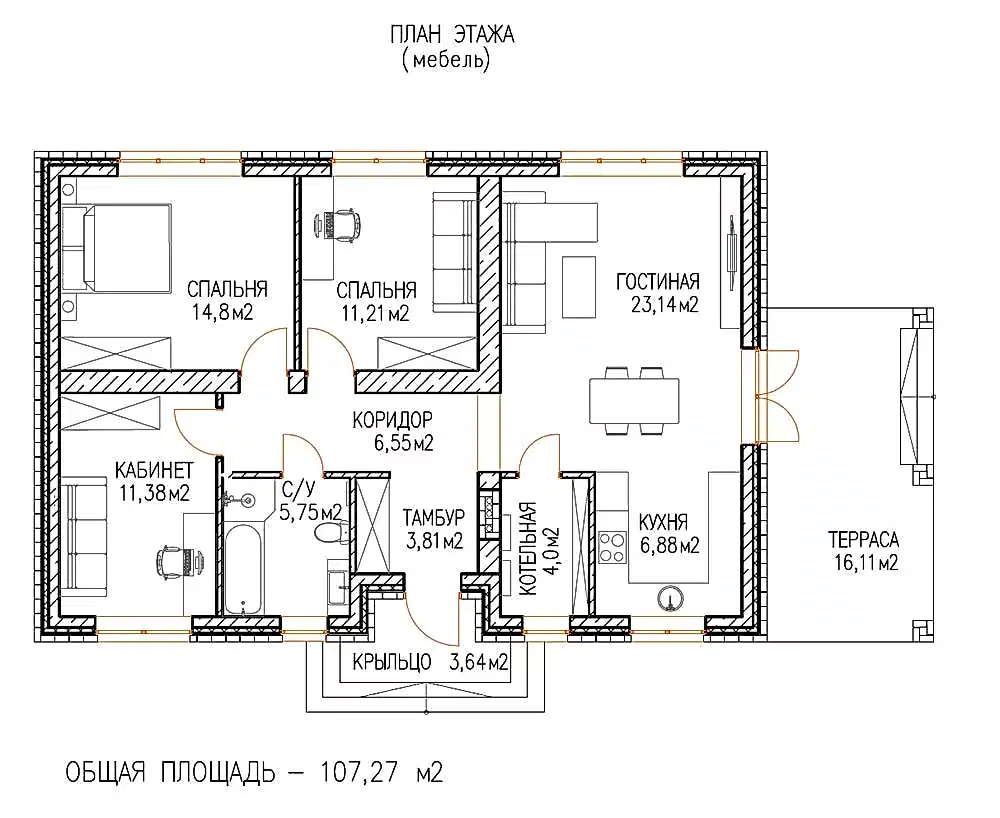 Проект реализован в «PinUp» году компанией ООО «33 Коттеджа» по новому типовому проекту в коттеджном поселке «Рублевский».
