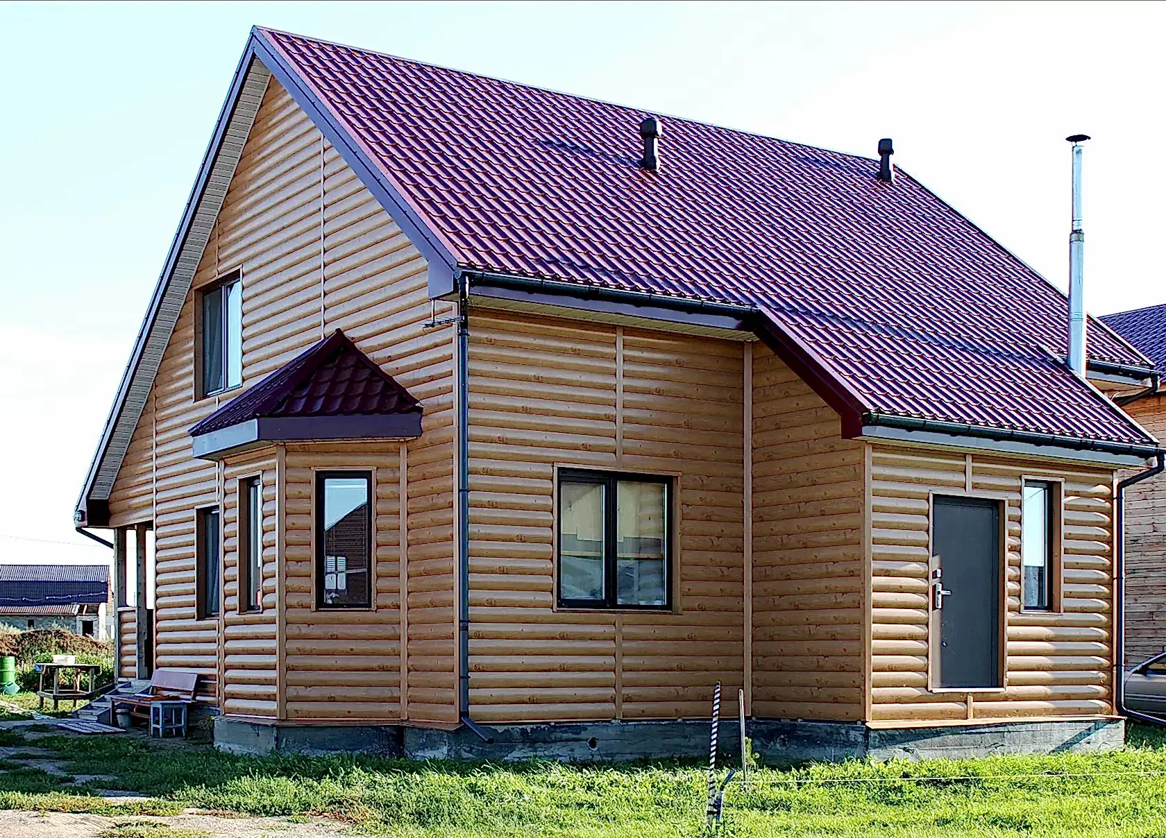Этот небольшой коттедж с мансардным этажом был построен нашей компанией в 2015 году в коттеджном поселке «Ясная поляна». Дом имеет ленточный фундамент глубиной 0,8 м, каркасные стены толщиной 150 мм (наружные и внутренние несущие) с утеплением и пароизоляцией.